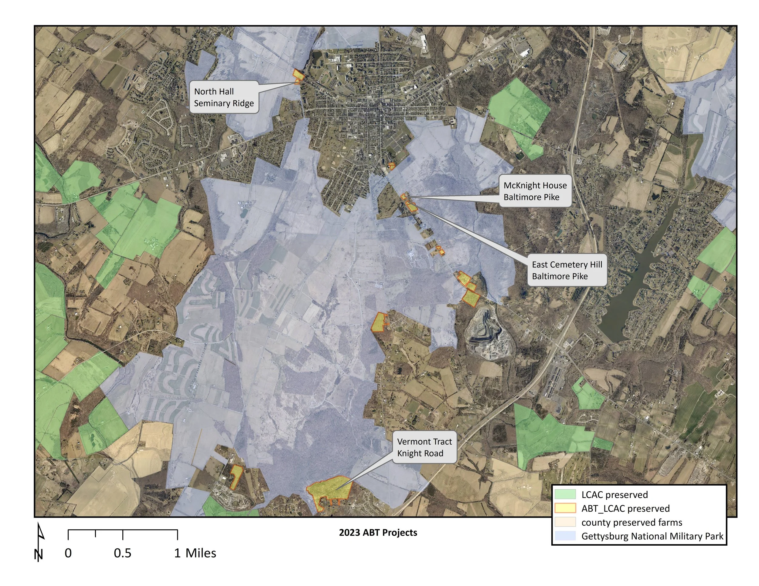 Since 2012, the Land Conservancy has been partnering with the American Battlefield Trust to protect parcels in the Gettysburg Battlefield Historic District that are eligible for acquisition by the National Park Service but aren’t yet preserved. The Land Conservancy now holds conservation easements on fifteen parcels covering nearly 100 acres owned by the Trust that are waiting for their eventual incorporation into the Gettysburg National Military Park.